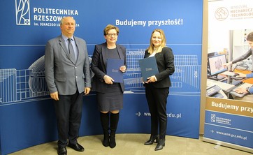 Rektor Politechniki Rzeszowskiej prof. Piotr Koszelnik i dyrektor Zespołu Szkół Ogólnokształcących im. Jana Pawła II Sióstr Prezentek s. mgr Agata Rozmus podpisali porozumienie o współpracy.