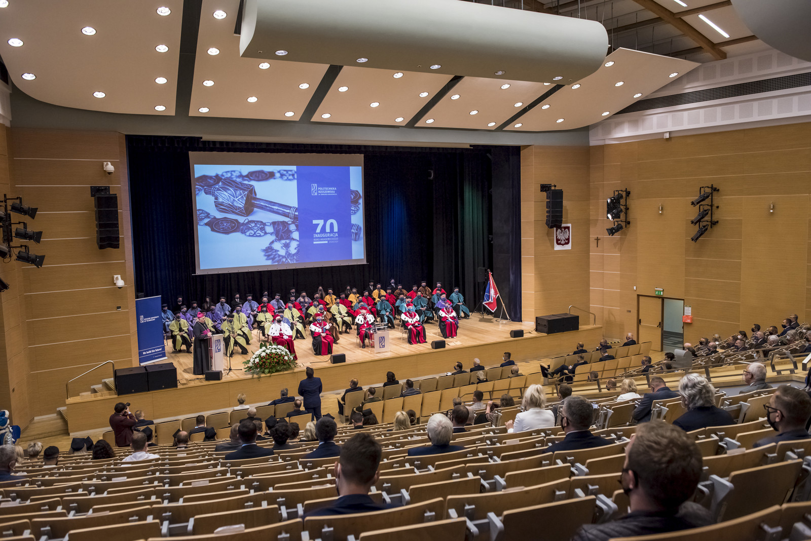 Ze względu na sytuację epidemiczną uroczystość inaugurująca jubileuszowy 70. rok akademicki na naszej uczelni odbyła się w warunkach zaostrzonego reżimu sanitarnego z zachowaniem wszelkich środków ostrożności. Pracownicy, studenci i sympatycy naszej uczelni mogli w niej uczestniczyć w relacji na żywo transmitowanej na kanale YouTube, uczelnianym Facebooku i na antenie Akademickiego Radia i Telewizji Centrum.