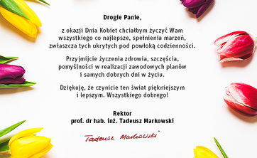 Prof. Tadeusz Markowski, rektor Politechniki Rzeszowskiej składa życzenia wszystkim Paniom.