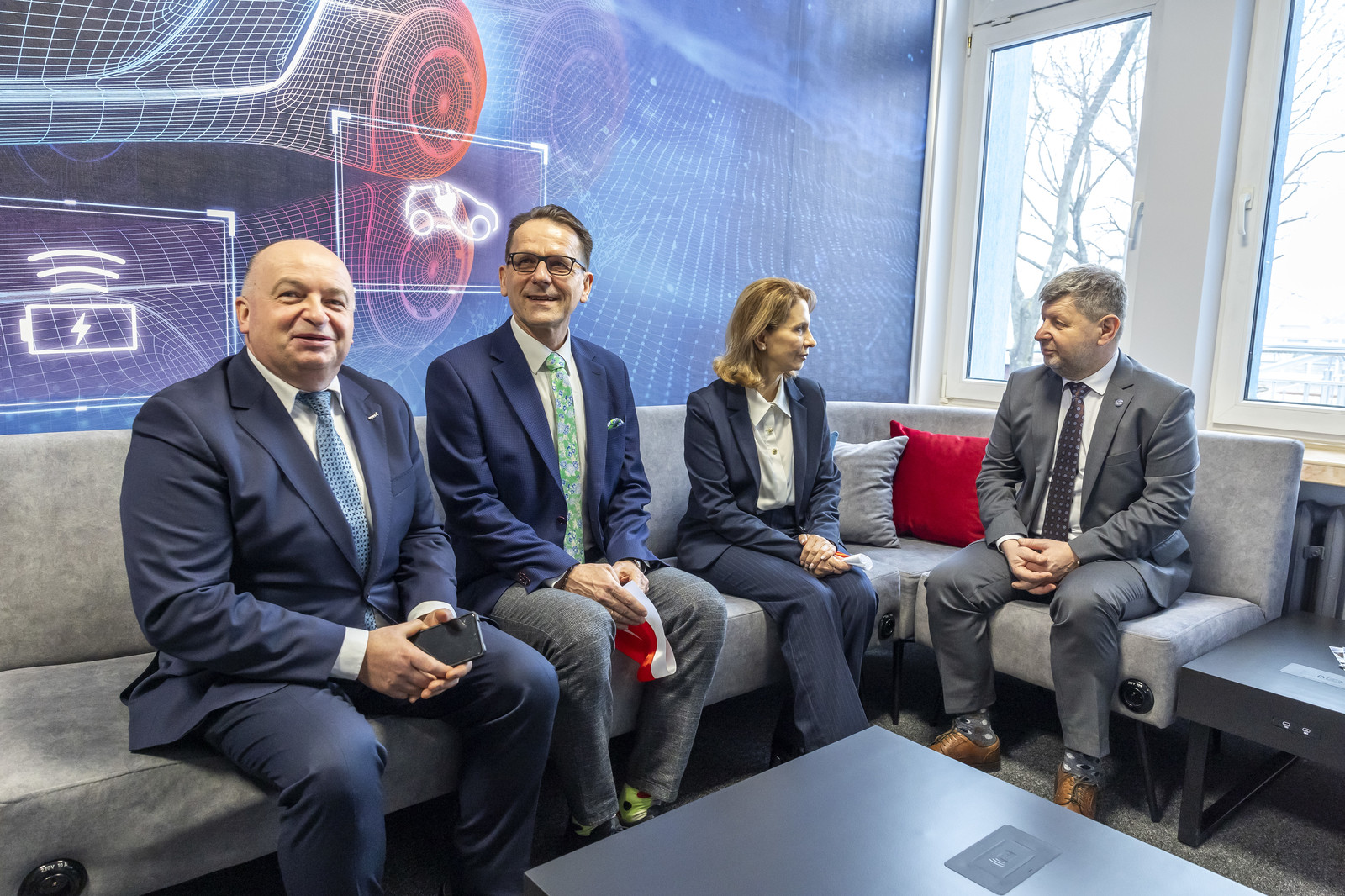 Otwarcie strefy relaksu. Od lewej: B. Dzik, prof. P. Koszelnik, prof. PRz R. Zajdel,